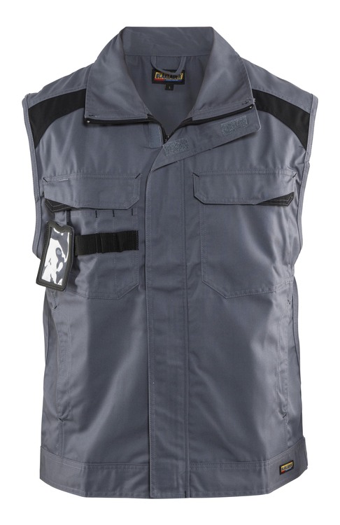 Arbeitsweste mit Details und Nahtverriegelungen in Kontrastfarbe. Zwei Brusttaschen mit Balg und Patte, zweigeteiltem Stiftefach und Schlaufenband für kleines Werkezeug. Zwei Seitentaschen. Reißverschluss mit Patte und Knopf. ID-Kartentasche. Bewegungsfalte am Rücken für eine bessere Bewergungsfreiheit. Verstellbarer Westenbund. Zwei Innentaschen und Handytasche.