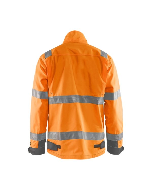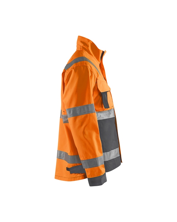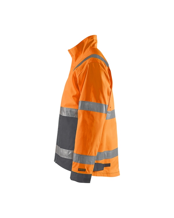 Warnjacke entwickelt für Arbeiten in jeder Gefahrenzone. Kürzere Front für maximale Bewegungsfreiheit, verlängertes Rückenteil für einen besseren Schutz für den unteren Rücken. Brusttasche. Ausweisfach. Innentasche mit Handytasche. Verdeckter Reißverschluss vorne. Dunklen Stoff für Bereiche mit hoher Verschmutzungsgefahr. 50 mm breite Reflektoren. Zertifiziert nach EN 471, Klasse 3.