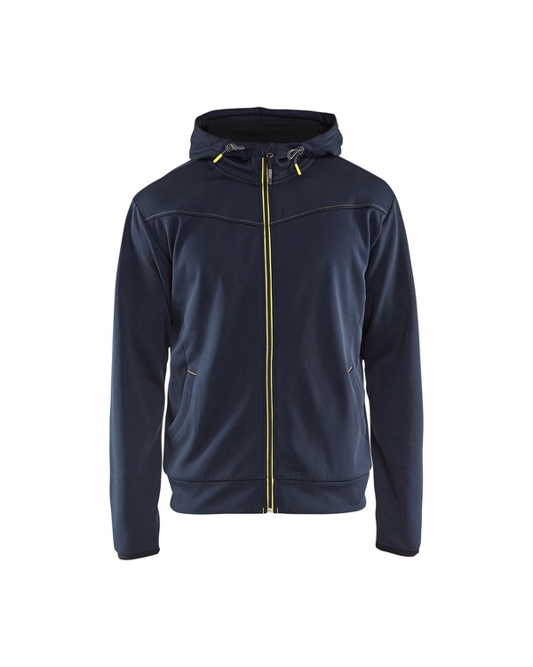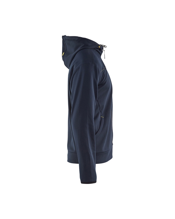 Funktioneller Kapuzensweater mit weichem, aufgerauten Innenfutter und Reißverschluss. Zwei Seitentaschen plus einer Handytasche mit Reißverschluss.