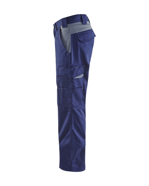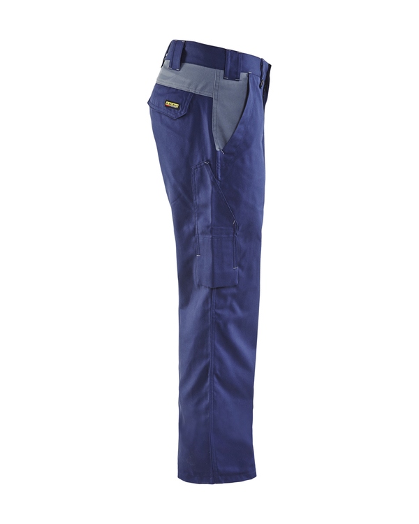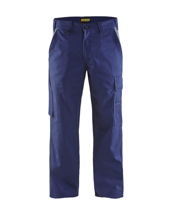 Bundhose mit vielen Details in Kontrastfarben. Zwei Seitentaschen. Gesäßtaschen mit Patte und Knopf. Eine große Beintasche mit Balg, Stiftefach und innenliegender Handytasche. Zollstocktasche. Schlüsselring. Starker Reißverschluss. Breite Gürtelschlaufen vorne und an den Seiten.