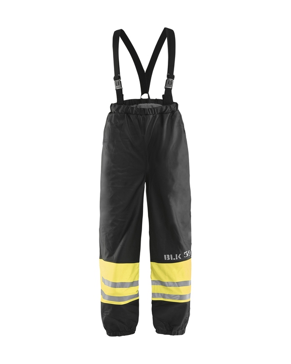 Regen-Set für Kinder, mit Polyesterfleece gefüttert. Wind- und wasserdicht mit verschweißten Nähten. Verstellbare und abnehmbare Armbänder und abnehmbarem Schultergurt auf Hosenbeinen. Verstellbare Taille. Abnehmbare Kapuze. Für eine bessere Sichtbarkeit zusätzlich mit reflektierenden Nähten.