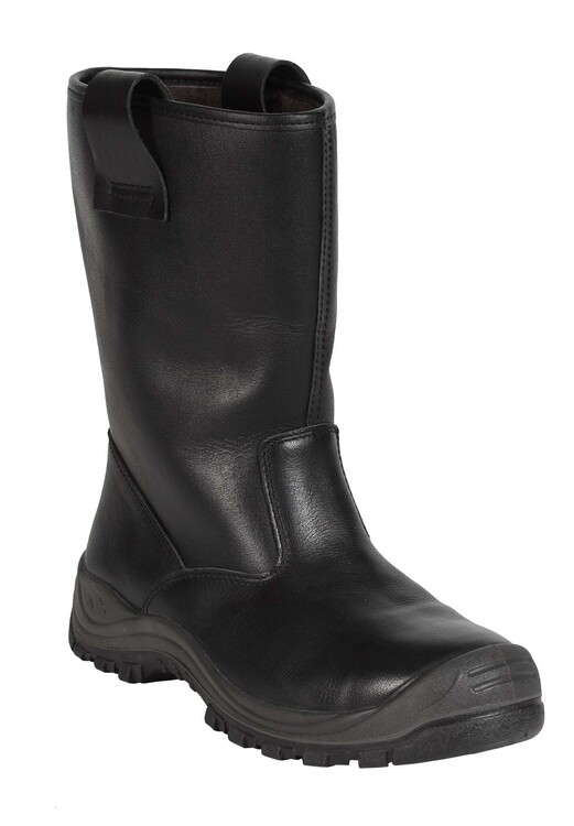 Schuhe wahlweise mit normalen oder breiten Leisten. Breiter Leisten: Schuhweite 12. Stahlkappe, durchtrittsichere Stahlzwischensohle. Normaler Leisten: Schuhweite 11. Stahlkappe, durchtrittsichere Stahlzwischensohle. Schaft aus vollnarbigem Büffellleder: TPU-Laufsohle für guten Grip, antistatisch, öl- und säurebeständig. Zwischensohle und Innensohle aus PU mit Anti-Shock-Stoßabsorbtion. Stability board sorgt für erhöhte Stabilität und korrekten Flexpunkt. Webpelzfutter für angenehm warme Füße bei jedem Wetter. EN ISO 20345, Sicherheitsklasse S3 SRC.