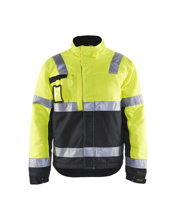 Wasser- und schmutzabweisendes Obermaterial. Zwei Front- und eine Brusttasche, mit Reißverschlüssen. Stiftetasche. Einziehbare Ausweistasche. Verstellbare Bündchen und Saum. Eine Innentasche. 50 mm breite Reflexstreifen. Zertfiziert nach EN 471, Warnschutzkleidung. S-L Klasse 2, XL-4XL Klasse 3, EN 342 zertifiziert, Schutz gegen Kälte.