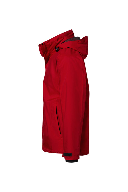 Kombijacke aus atmungsaktivem, wasser- und winddichtem Obermaterial mit getapten Nähten, abnehmbarer und regulierbarer Kapuze mit Schild, verlängertem, abgerundetem Rückenteil, hochwertigem Zwei-Wege-Frontreißverschluss mit Windstoppatte und Reißverschlussgarage, wasserdichten Reißverschlüssen an den Taschen und Reißverschlussärmeltasche. Alle Reißverschlüsse von YKK®. Weitenverstellbarer Saumabschluss mit Tunnelkordelzug und Stoppern, weitenverstellbare Ärmelbündchen mit Klettband zum stufenlosen Regulieren. Hergestellt aus strapazierfähigem Obermaterial aus 2-Lagen-Laminat mit TRIACTIVE PRO-Technologie für maximale und zuverlässige Wasser- und Winddichte. Gewebtes HAKRO Necklabel aus hochwertigem Kettsatin mit weichen, ultraschallgeschnittenen Bandkanten für höchsten Tragekomfort und gewebtes HAKRO Flaglabel an der linken Seitennaht.