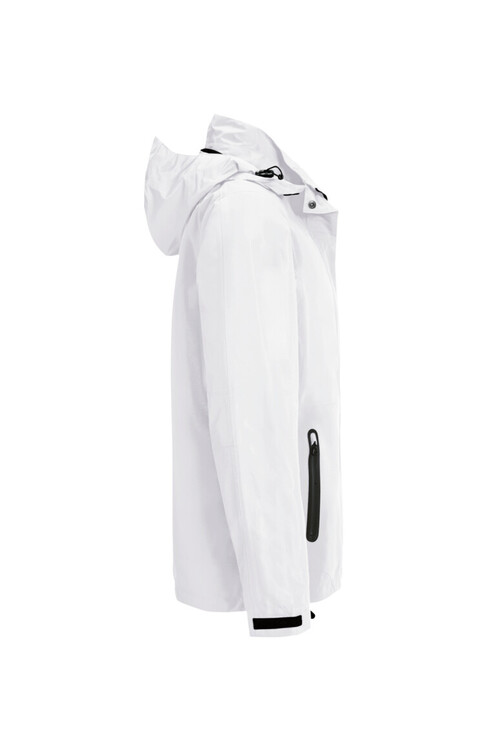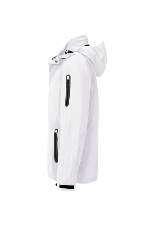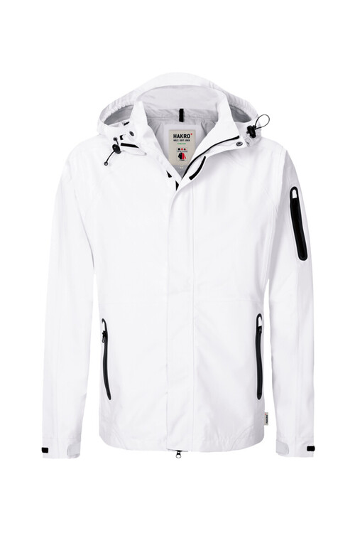Kombijacke aus atmungsaktivem, wasser- und winddichtem Obermaterial mit getapten Nähten, abnehmbarer und regulierbarer Kapuze mit Schild, verlängertem, abgerundetem Rückenteil, hochwertigem Zwei-Wege-Frontreißverschluss mit Windstoppatte und Reißverschlussgarage, wasserdichten Reißverschlüssen an den Taschen und Reißverschlussärmeltasche. Alle Reißverschlüsse von YKK®. Weitenverstellbarer Saumabschluss mit Tunnelkordelzug und Stoppern, weitenverstellbare Ärmelbündchen mit Klettband zum stufenlosen Regulieren. Hergestellt aus strapazierfähigem wasser- und winddichtem Obermaterial aus 2,5-Lagen-Laminat mit TRIACTIVE PRO-Technologie für maximale und zuverlässige Wasser- und Winddichte. Gewebtes HAKRO Necklabel aus hochwertigem Kettsatin mit weichen, ultraschallgeschnittenen Bandkanten für höchsten Tragekomfort und gewebtes HAKRO Flaglabel an der linken Seitennaht.