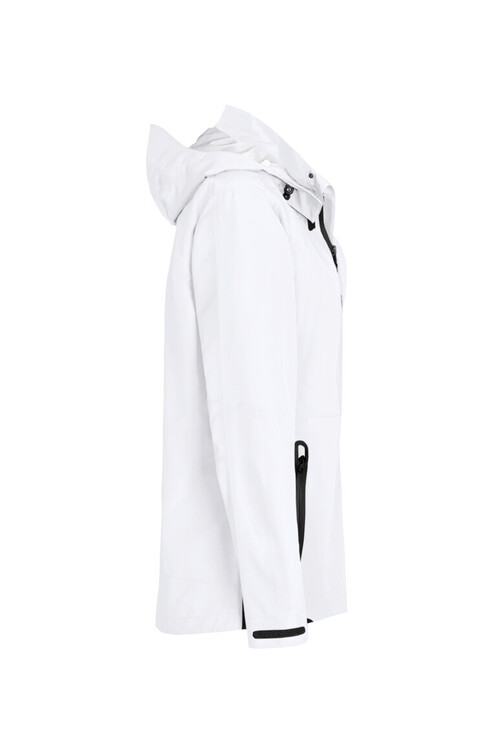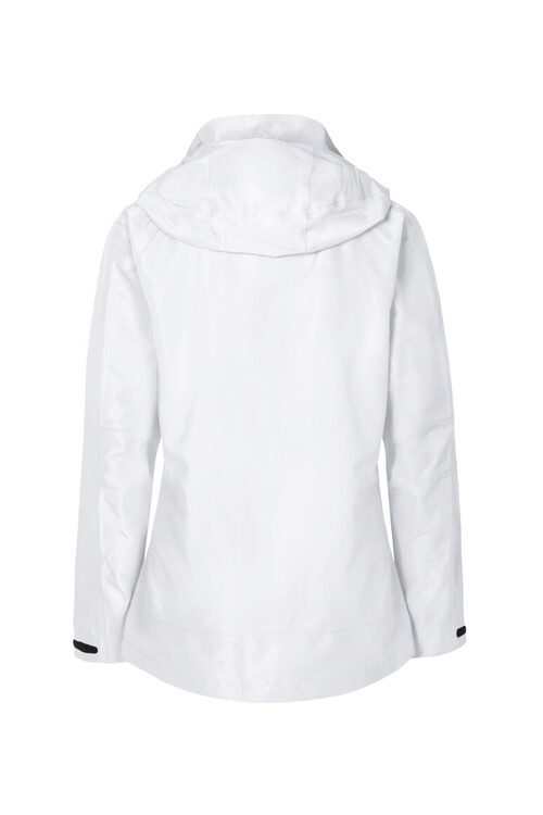 Kombijacke für Damen aus atmungsaktivem, wasser- und winddichtem Obermaterial mit getapten Nähten, abnehmbarer und regulierbarer Kapuze mit Schild, verlängertem, abgerundetem Rückenteil, hochwertigem Zwei-Wege-Frontreißverschluss mit Windstoppatte und Reißverschlussgarage, wasserdichten Reißverschlüssen an den Taschen und Reißverschlussärmeltasche. Alle Reißverschlüsse von YKK®. Weitenverstellbarer Saumabschluss mit Tunnelkordelzug und Stoppern, weitenverstellbare Ärmelbündchen mit Klettband zum stufenlosen Regulieren. Hergestellt aus strapazierfähigem wasser- und winddichtem Obermaterial aus 2,5-Lagen-Laminat mit TRIACTIVE PRO- Technologie für maximale und zuverlässige Wasser-und Winddichte. Gewebtes HAKRO Necklabel aus hochwertigem Kettsatin mit weichen, ultraschallgeschnittenen Bandkanten für höchsten Tragekomfort und gewebtes HAKRO Flaglabel an der linken Seitennaht.