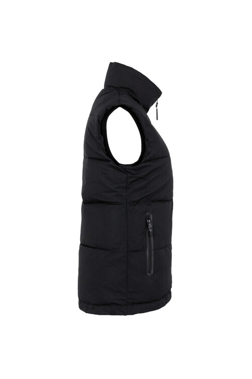 Bodywarmer für Damen, mit hochwertigem Zwei-Wege-Frontreißverschluss mit innenliegender Windstoppatte, Reißverschlussgarage und reflektierendem Reißverschlussanhänger, weitenregulierbarem Saumabschluss mit Tunnelkordelzug und Stoppern, verlängertem, abgerundetem Rückenteil, Krageninnenseite und Armloch mit weichen, elastischen Strickbündchen, Innentasche und seitlichen Einschubtaschen mit Reißverschluss. Alle Reißverschlüsse von YKK®. Hergestellt aus atmungsaktivem, strapazierfähigem Gewebe mit Wattierung aus wärmender, pflegeleichter Kunstfaser. Gewebtes HAKRO Necklabel aus hochwertigem Kettsatin mit weichen, ultraschallgeschnittenen Bandkanten für höchsten Tragekomfort und gewebtes HAKRO Flaglabel an der linken Seitennaht.