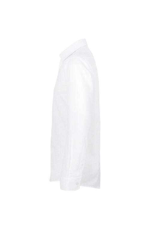 Klassisches langärmeliges Hemd mit Kent-Kragen, aufgesetzter Brusttasche, leicht gerundetem Saum, modischer Paspel aus dunkelblauem Satin an der inneren Kragennaht, hochwertig verarbeiteter Knopfleiste, doppelter Schulterpasse, 4-Loch-Knöpfen - über Kreuz vernäht und doppelt verknotet für extra festen Halt -, Ersatzknöpfen, eingearbeiteten Kragenstäbchen für einen perfekt sitzenden Hemdkragen und weitenverstellbaren Manschetten. Hergestellt aus formstabilem, strapazierfähigem und bügelfreiem Baumwoll-Popeline. Gewebtes HAKRO Necklabel aus hochwertigem Kettsatin mit weichen, ultraschallgeschnittenen Bandkanten für höchsten Tragekomfort.