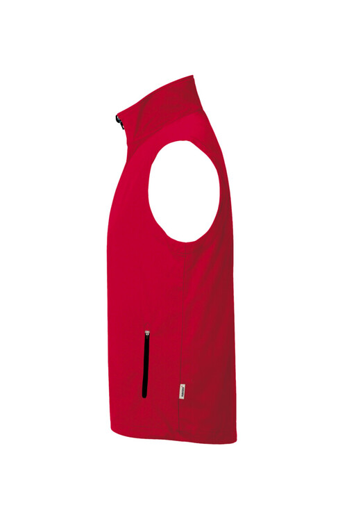 Leichte, atmungsaktive, strapazierfähige Softshellweste mit wasser- und winddichtem Softshellobermaterial, hochwertigem Zwei-Wege-Frontreißverschluss mit innenliegender Windstoppatte, Reißverschlussgarage und Reflexpaspel, seitlichen Reißverschlusstaschen mit Reflexapplikation und reflektierender Druckgrafik am verlängerten, abgerundeten Rückenteil, weitenverstellbarem Saumabschluss mit Tunnelkordelzug und Stoppern. Alle Click-down-Reißverschlüsse von YKK®. Hergestellt aus leichtem, dehnfähigem Softshellmaterial für exzellente Bewegungsfreiheit aus Interlock-2-Lagen-Laminat mit TRIACTIVE PRO-Technologie. Gedrucktes HAKRO Necklabel für höchsten Tragekomfort und gewebtes HAKRO Flaglabel.