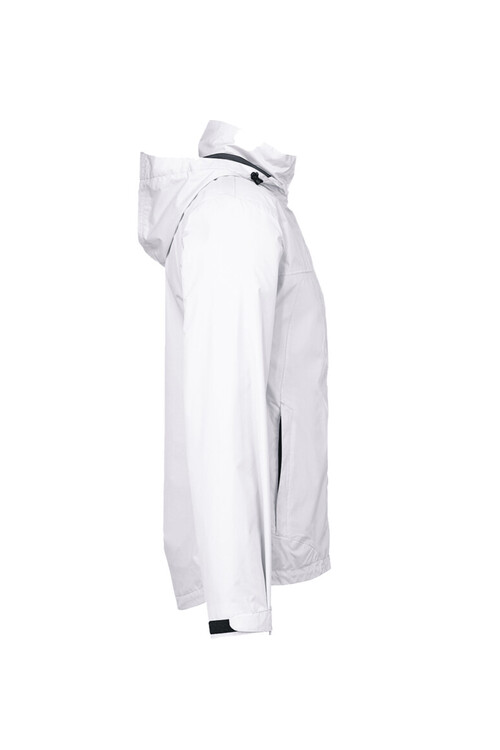 Leichte, funktionelle, Regenjacke mit wasser- und winddichtem Obermaterial sowie getapten Nähten, klimaregulierendem Netz-Innenfutter, angenehm weichem Fleece an der Krageninnenseite, einer im Kragen integrierbaren und weitenverstellbaren Kapuze, verschließbarer Brustinnentasche, hochwertigem Frontreißverschluss mit doppelter Windstoppatte und Außentaschen mit Reißverschluss. Alle Reißverschlüsse von YKK®. Der Saumabschluss mit verlängertem, abgerundetem Rückenteil ist mit einem Tunnelkordelzug mit Stoppern in der Weite verstellbar, weitenverstellbare Ärmelbündchen mit Klettband zum stufenlosen Regulieren und Reflexapplikationen für verbesserte Sichtbarkeit. Hergestellt aus strapazierfähigem, wasser- und winddichtem, atmungsaktivem Obermaterial aus 2-Lagen-Laminat mit TRIACTIVE PRO-Technologie für maximale und zuverlässige Wasserdichte. Gewebtes HAKRO Necklabel aus hochwertigem Kettsatin mit weichen, ultraschallgeschnittenen Bandkanten für höchsten Tragekomfort und gewebtes HAKRO Flaglabel an der linken Seitennaht.