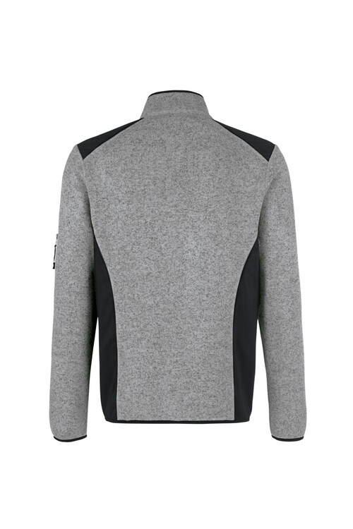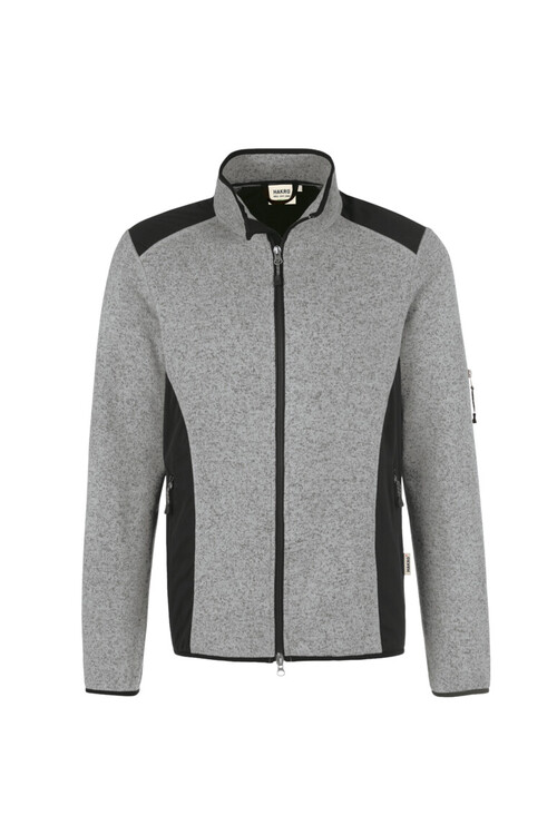 Sportive Strickfleecejacke mit kontrastfarbigen Einsätzen an den Seiten und Schultern, Teilungsnähten auf Vorder- und Rückenteil für perfekte Passform, hochwertigem, kontrastfarbigem Zwei-Wege-Frontreißverschluss, seitlichen Reißverschlusstaschen, elastischen Saum- und Ärmelbündchen, Reißverschluss-Ärmeltasche am linken Ärmel, Nackenband und Aufhängeband im Nacken. Alle Reißverschlüsse von YKK®. Hergestellt aus atmungsaktivem Strickfleece und leichtem, elastischem Softshellmaterial. Gewebtes HAKRO Necklabel aus hochwertigem Kettsatin mit weichen, ultraschallgeschnittenen Bandkanten für höchsten Tragekomfort und gewebtes HAKRO Flaglabel an der linken Seitennaht.
