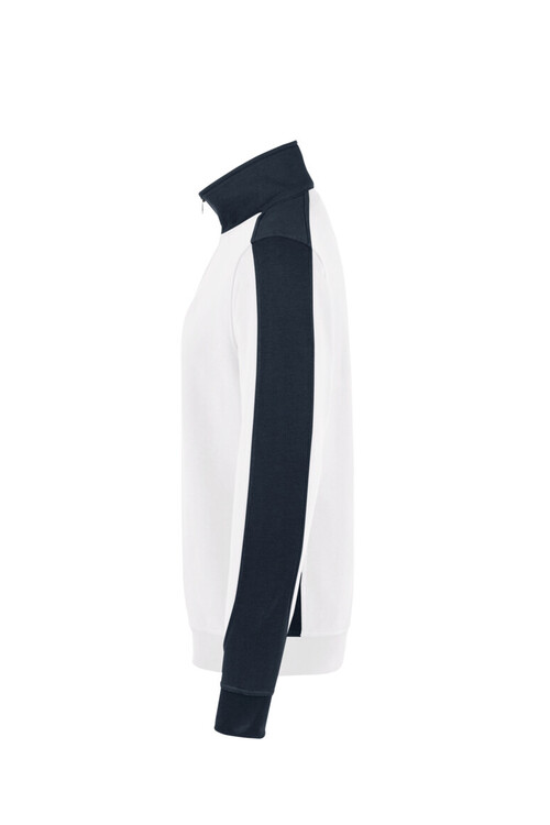 Besonders strapazierfähiger Troyer mit kontrastfarbigen Einsätzen an den Seiten, Schultern und Ärmeln, hochwertigem Reißverschluss von YKK®, formstabilen Bündchen mit LYCRA®-Anteil, nicht angerauter Innenseite (French-Terry) und Nackenband. Leasingkoller zur einfachen Kennzeichnung in der gewerblichen Wäscherei und Aufhängebänder im Saum. Hergestellt aus weicher, besonders pflegeleichter und funktioneller Maschenware aus dem HAKRO Performance-Materialmix Mikralinar®. Gewebtes HAKRO Necklabel aus hochwertigem Kettsatin mit weichen, ultraschallgeschnittenen Bandkanten für höchsten Tragekomfort und gewebtes HAKRO Flaglabel an der linken Seitennaht.